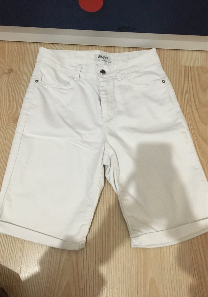 Kızıma olmadığı için satışta 2 defa ancak giydi.28 beden.Pamuk kumaştan, mini boyda ve regular fit beyaz kadın bermuda şort. Desensiz, günlük kullanıma uygun, rahat ve şık bir sokak stili sunar.