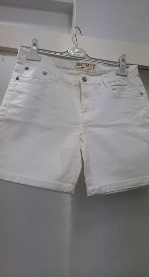 Beyaz pamuklu, mini boy, regular fit kadın bermuda şort. Günlük kullanım ve sokak stiline uygun, zahmetsiz şıklık sunar.