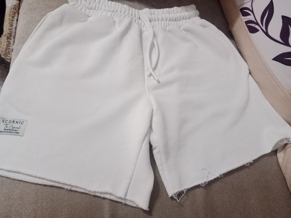 Beyaz renk, rahat kesim, kısa paça kadın Bermuda şort. Keten kumaştan üretilmiş, desen içermeyen ve günlük kullanım için uygun şort.