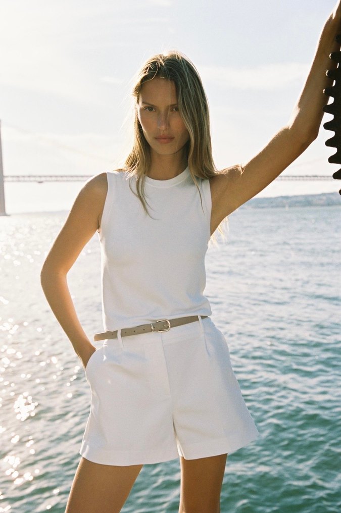 Beyaz, rahat kesim kadın bermuda şortları, yumuşak pamuk kumaştan üretilmiştir. Minimalist ve desensiz tasarımıyla dış mekanlarda rahat şıklık sunar. Ürün orijinal sıfır ve etiketlidir