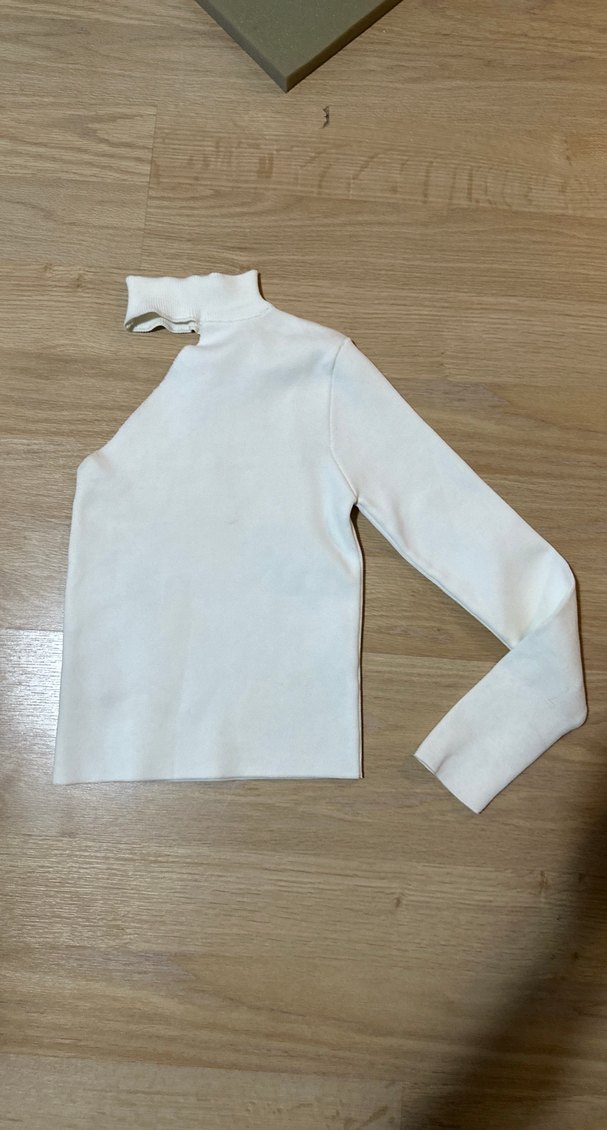 Beyaz, boğazlı, uzun kollu ve ince triko dokusuna sahip, vücuda oturan, yumuşak ve sıcak kumaştan yapılmış sade ve minimalist tasarımlı kazak.