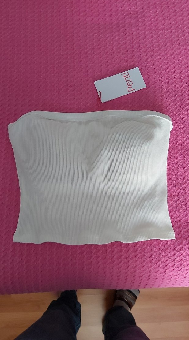 Yumuşak dokulu, beyaz crop top, hafif dalgalı kenarlarıyla rahat kullanım sağlar. Günlük kombinlere uygundur.