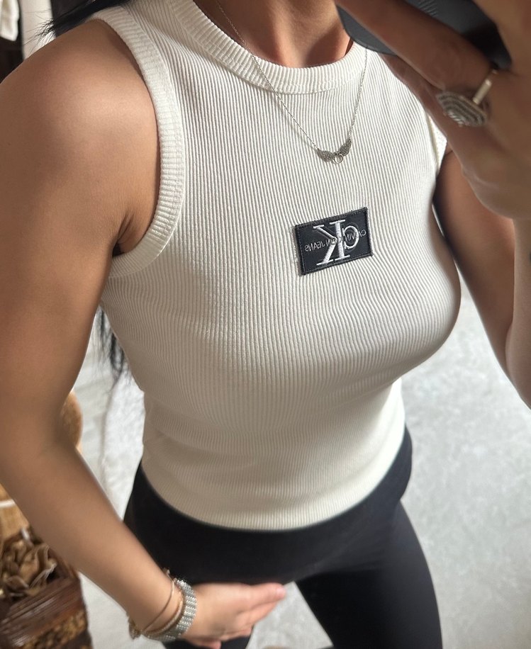 Beyaz Kadın Crop Top Kolsuz Calvin Clean