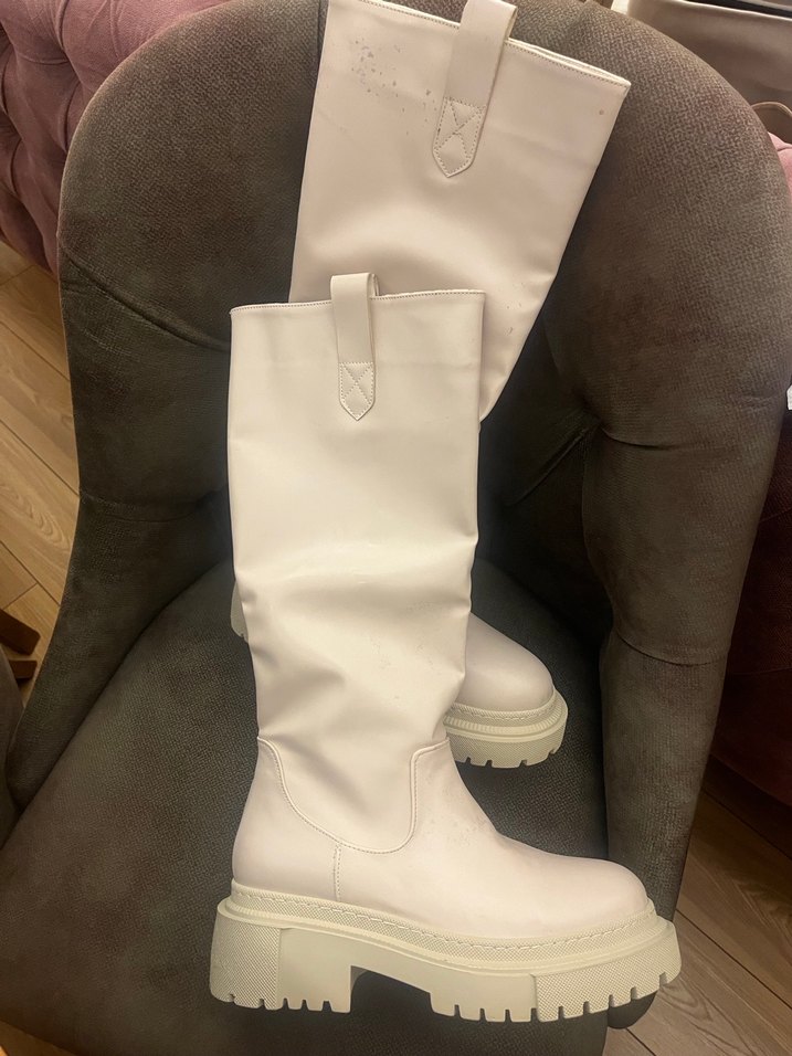 Beyaz Kadın Deri Çizme