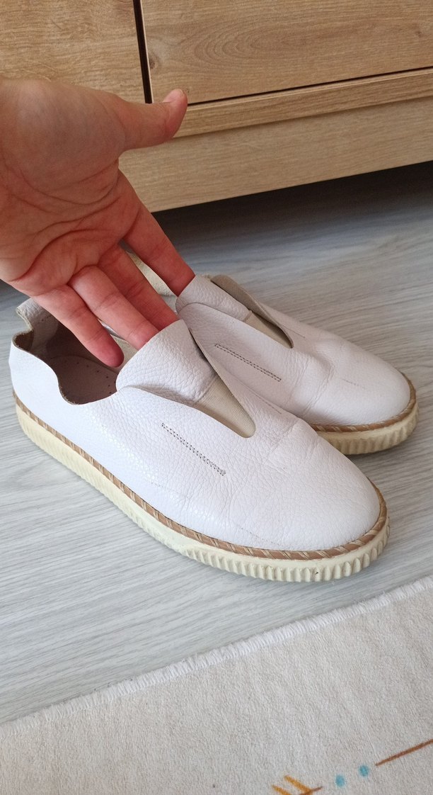 Beyaz Kadın Deri Dolgu Topuk Espadril