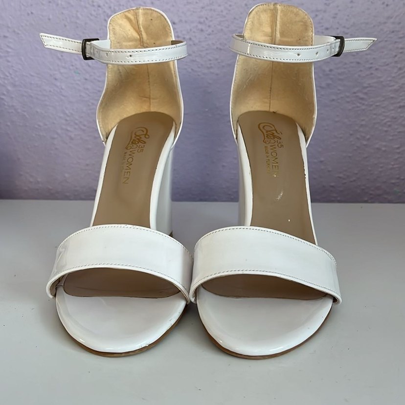 Parlak beyaz dolgu topuklu kadın abiye ayakkabı. Bilek bantlı, desen içermeyen ve rahat kauçuk malzemeden üretilmiştir. Düğünler için şık ve zarif.