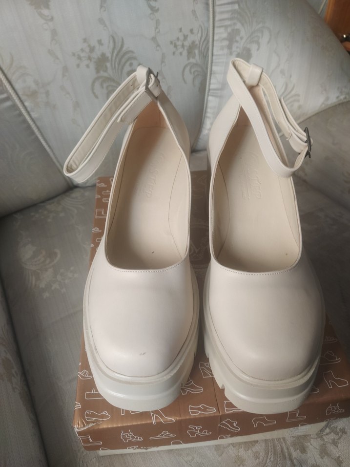 Beyaz, tokalı bantlı, dolgu topuklu kadın ayakkabısı. Minimalist ve pastel tonlarda, düğün için uygun.