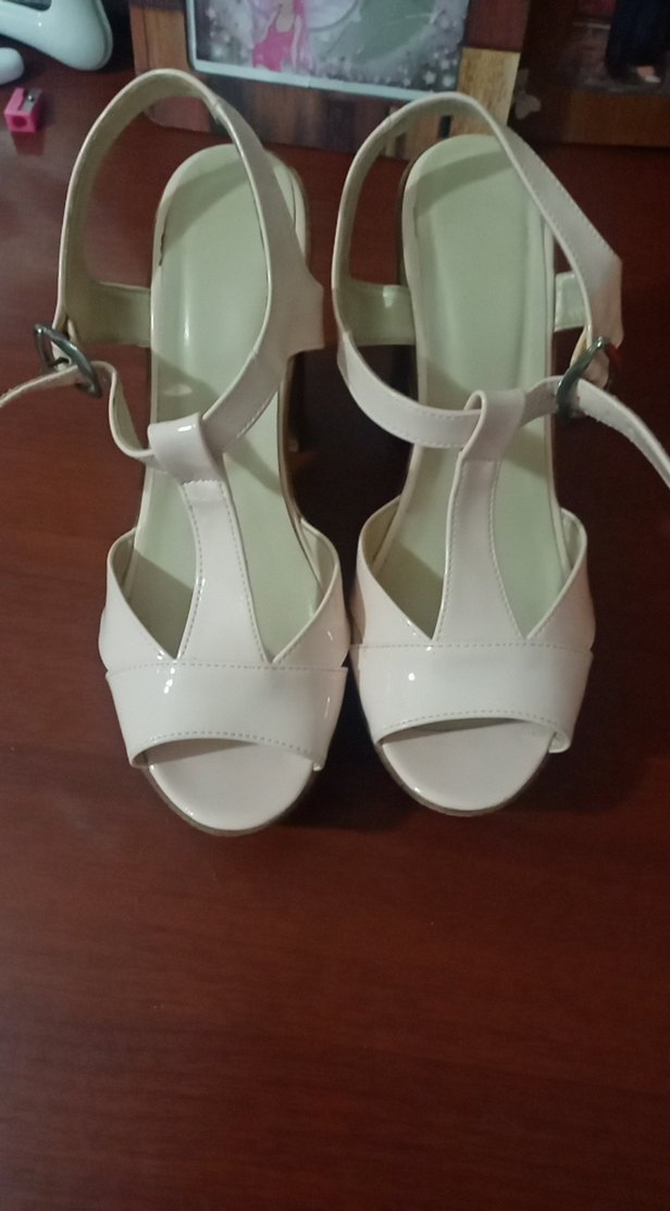 pudra renkte, tokalı bantlı dolgu topuklu sandalet. Minimalist ve klasik tarzda, günlük kullanım için uygundur. Yumuşak kauçuk malzemeden üretilmiştir. 40 numara ama kalıbı küçük 39a uyumludur.çok az giyilmiştir yüksek giyemediğim için satıyorum çok temizdir kusuru yoktur