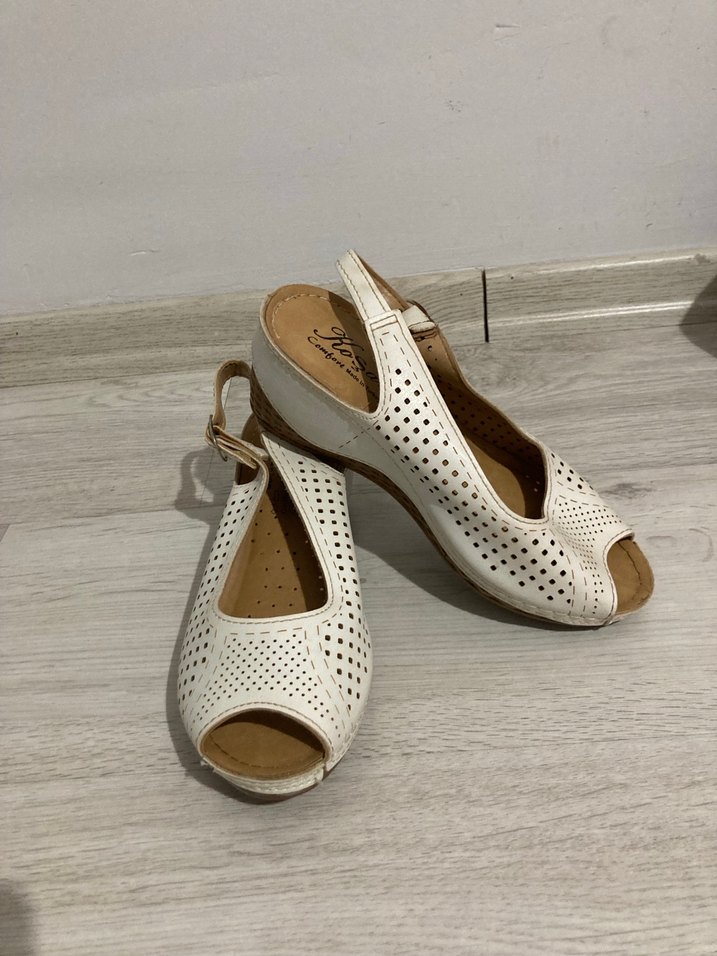 Görüldüğü gibi HİÇ KULLANILMADI! Beyaz, delikli tasarımlı, tokalı kayışlara sahip, kauçuk malzemeden yapılmış kadın dolgu topuklu sandalet. Minimalist ve klasik tarz, günlük kullanım için uygundur.