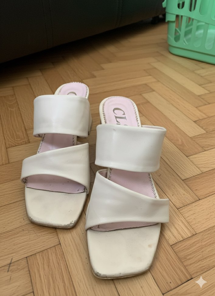 Beyaz renkte, tokalı dolgu topuklu kadın terliği, deformeleri göründüğü gibidir. Bu yıl da satın aldım. Aldığım fiyatın çok altında satışa koyacam. İstediğiniz şekilde fotoğraflayabilirim.