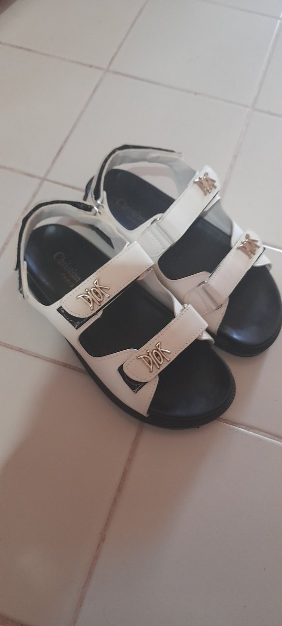 Beyaz, tokalı bantlı ve dolgu topuklu kadın sandaletleri, yumuşak kauçuk malzemeden ve baskılı desenlidir. Sokak modasına uygun.