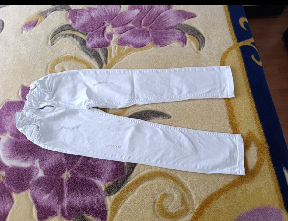 Beyaz renkli, sentetik kumaştan yapılmış, elastik detaylı, normal midi boyunda, regular fit kadın jean. Günlük kullanım için uygun sade ve rahat tarzda.