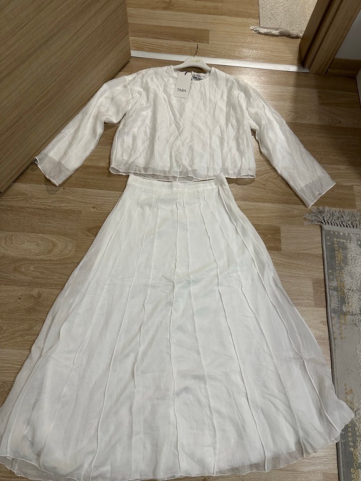 Beyaz uzun keten elbise, bol kesim ve pile detaylıdır. Notch yaka ve uzun kolludur. Vintage esintili bohem tarzda, düğünler için uygundur. etek beli kemerli 1 beden 38-40 bedene uygun sıfır etieketli ürün kusuru yok.Mevlit kuran bohçalarda kullanılır