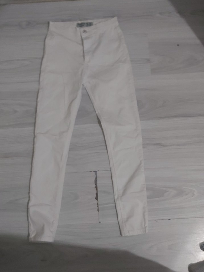 Beyaz renkte, midi boy ve regular fit olan bu kadın kumaş pantolon, rahat ve şık bir görünüm sunar. Dış mekânda günlük kullanıma uygundur.