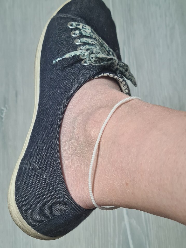Beyaz Boncuklu Kadın Halhal - Uzatma Zincirli