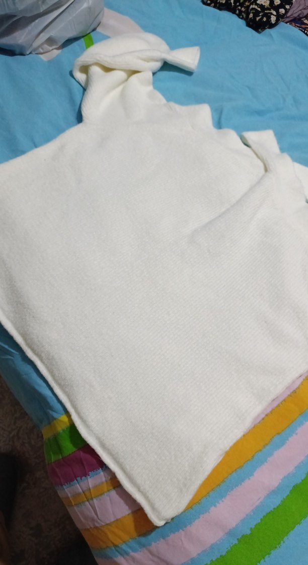 Yumuşak ve sıcak beyaz kazak.sorunsuz temiz yırtığı yok.standart beden hafif bol kol yakası da boyundan geçmeli açık yaka