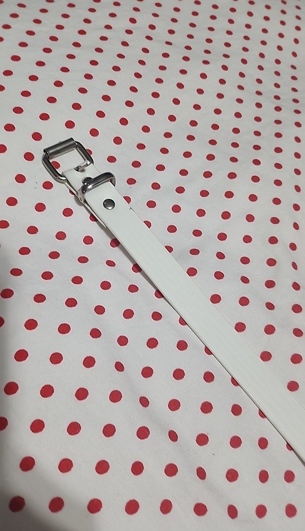 Bu kadın kemeri, minimalist ve sade bir tarz sunan beyaz plastik kayış ve gümüş tokaya sahiptir. 100 cm⚪