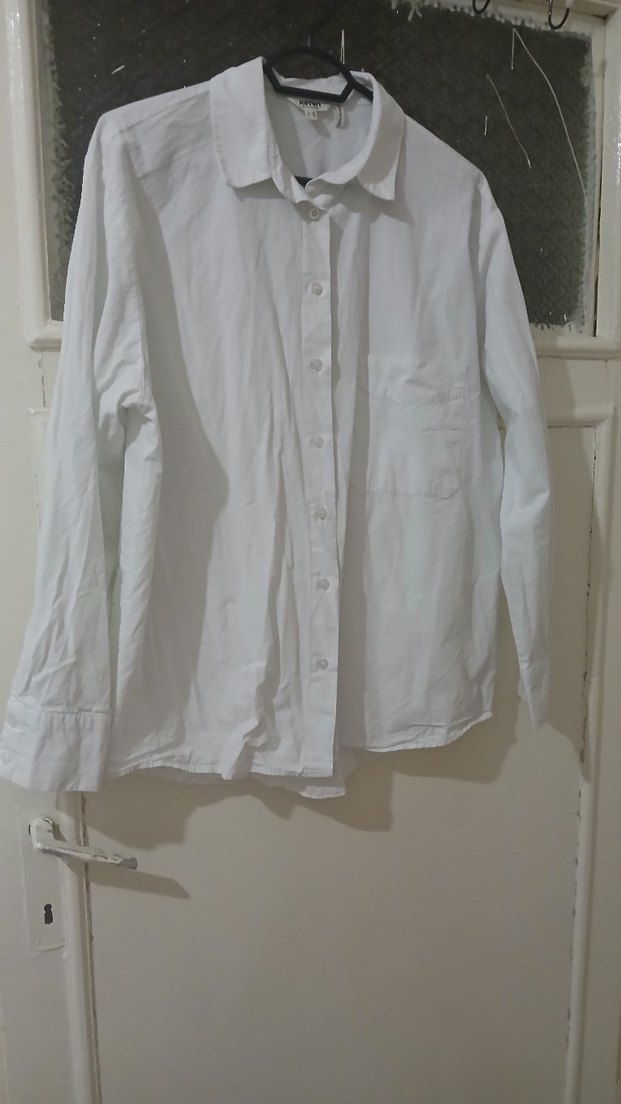 boyu 68 cm, kol boyu 57 cm, iki kol arası 56 cmdir. kalıbı geniştir Beyaz keten kadın gömlek, yakalı, düğmeli ve uzun kolludur. Rahat kesimi ve midi normal boyuyla minimalist günlük stil için uygundur. #koton #gömlek #ketengömlek #kadıngömlek #keten
