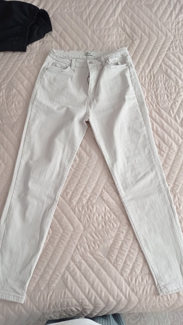 Fiyatını uygun tutuyorum faydalandırmak adına Beyaz keten kumaştan, normal boyda ve rahat kesime sahip kadın jean pantolon, günlük kullanıma uygun sade ve şık bir tasarım sunar.