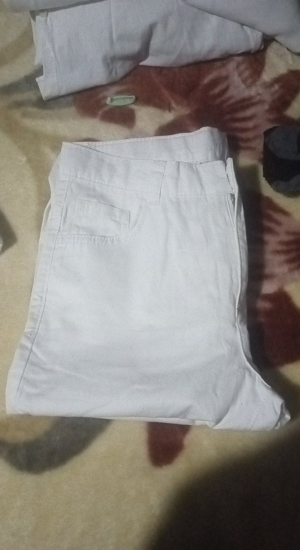 Beyaz keten kumaştan yapılmış, düzenli kesim ve midi boyda kadın pantolonu. Günlük kullanıma uygun, rahat ve şık bir tasarım.