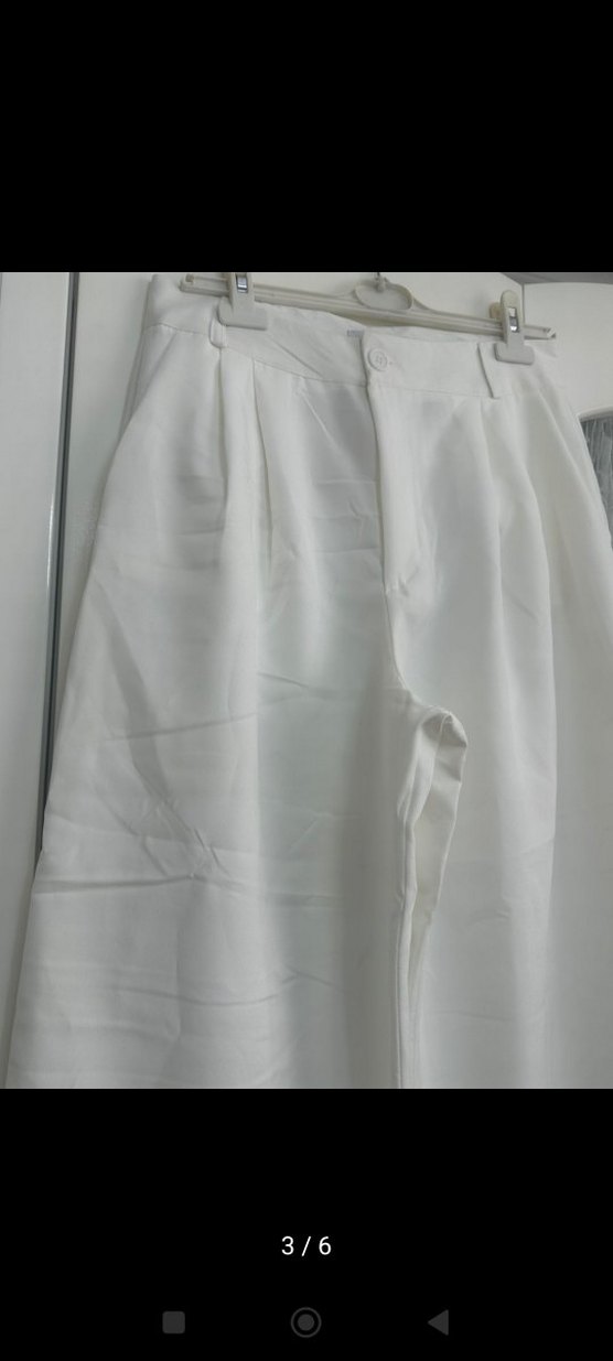Beyaz keten, pilili, regular fit kadın pantolon, minimalist ve normcore tarzda, günlük kullanıma uygun.