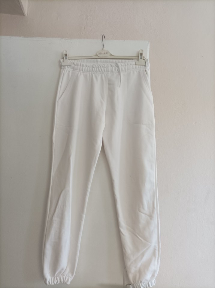 Yumuşak keten kumaştan, rahat kesim ve normal boyda beyaz kadın sweatpant. Günlük kullanıma uygun, salaş ve şık sokak stili için ideal. ️