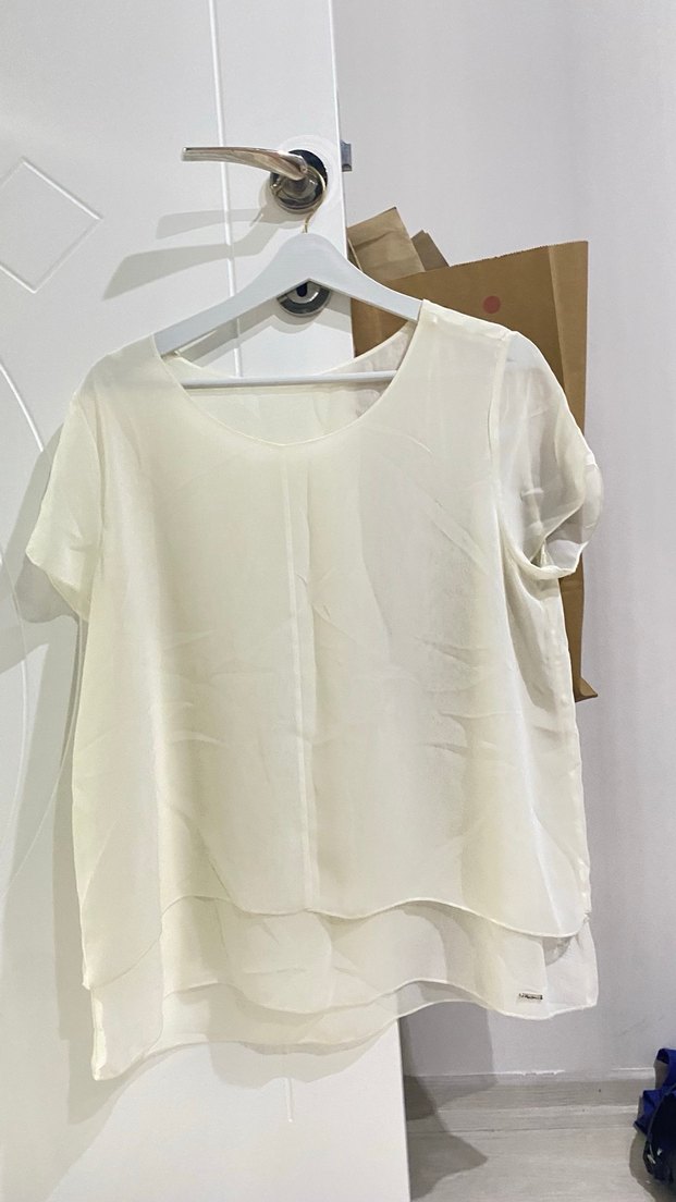 Beyaz renk, kısa kollu ve yuvarlak yakalı bu bluz, ipeksi kumaştan yapılmış ve salaş bir kesime sahip. Minimalist tasarımıyla günlük sokak stiline uygun, zahmetsiz şıklık sunar. ✨