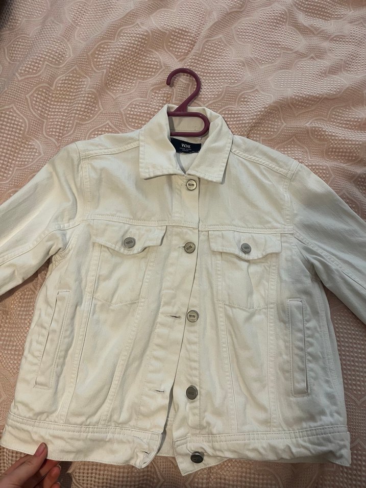 Beyaz Kadın Kot Ceket