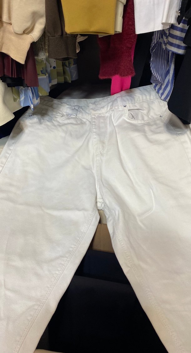 , fitted beyaz pantolon, yumuşak kot kumaştan, gündelik sokak stili için uygundur. Beli 37 santim boyu 91 santimdir kot dur beden olmadığı için satışta