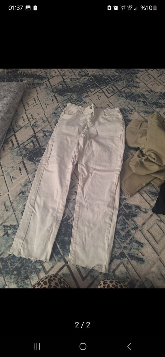 Beyaz kot pantolon, ve regular fit kesime sahip. Trendy casual ve street wear tarzlar için uygun, desensiz tasarımıyla çok yönlü kullanım sağlar.