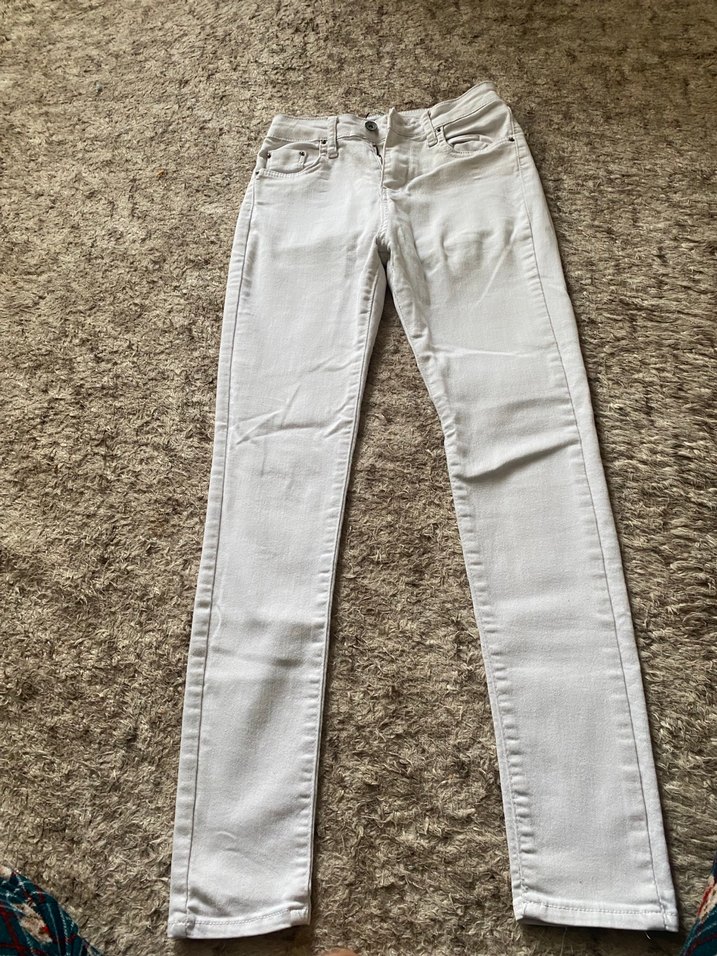Beyaz midi uzunlukta, düzenli kesim kadın kot pantolon. Günlük kullanıma uygun, sade ve zahmetsiz şıklık sunar skkiny jean dar paça