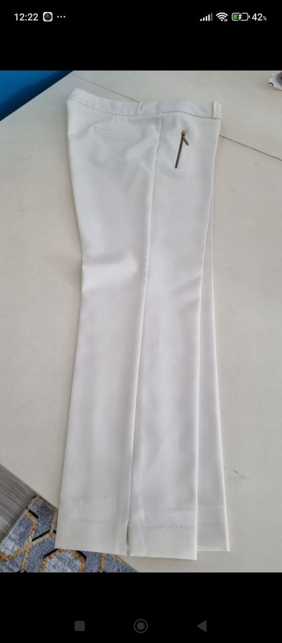 Beyaz, kadın kumaş pantolon, fermuar detaylı kuması asırı kalıtelı asla ıc gostermez 2 defa gıyıldı tertemız ufacık defosu yok bel 46 cm boy 94 cm paca enı 17 cm✨lıkralıdır marka temsılıdır