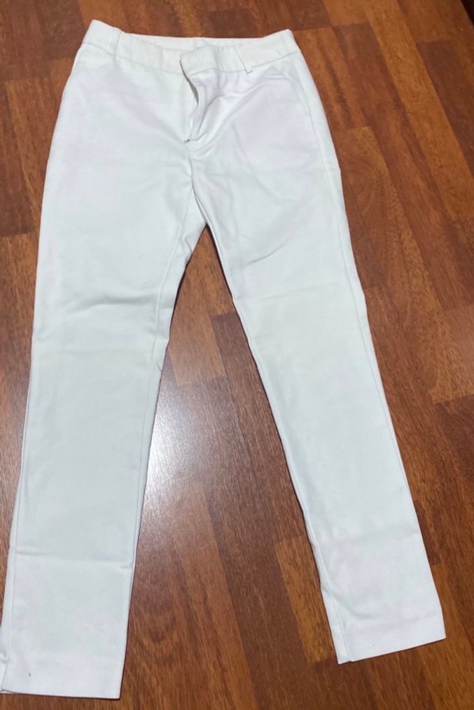 Beyaz, midi boy kadın kumaş pantolon. Minimalist, normcore tarzda, ofis için şık ve rahat bir seçenek. Kullanıma bağlı Hafif tiftiklenme vardır kesinlikle kullanıma engel değildir.