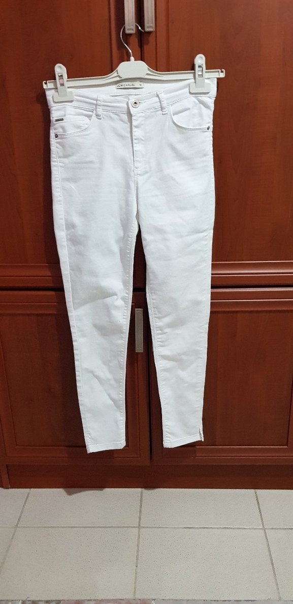 Beyaz, midi boy, fermuarlı kadın jean, günlük sokak stiline uygun. Hijyen amaçlı değişim ve iade yoktur.