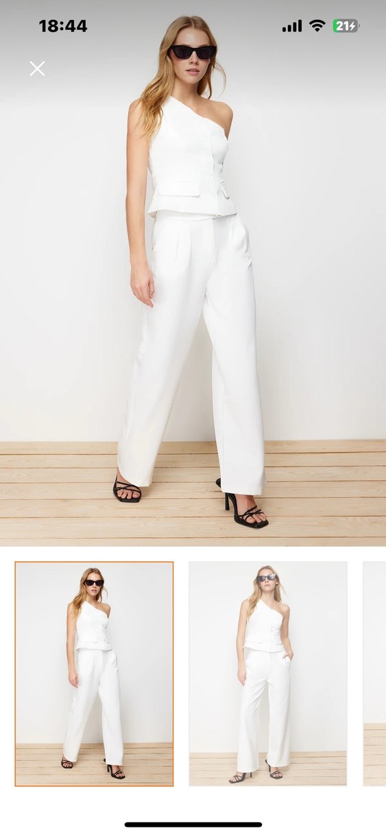 Beyaz, midi boy, regular kesim kadın pantolon. Hiç giyilmedi Hafif iç gösteriyor tabi ki uygun çamaşırla giyilmesi lazım İade süresi geçtiği için veremedim