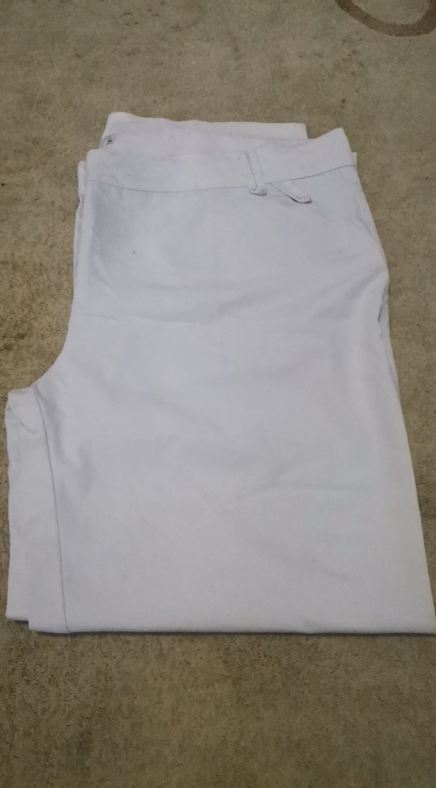 Beyaz, midi boy, düz kesim, sentetik kumaştan kadın pantolon, günlük rahat kullanım için uygun. 56 beden