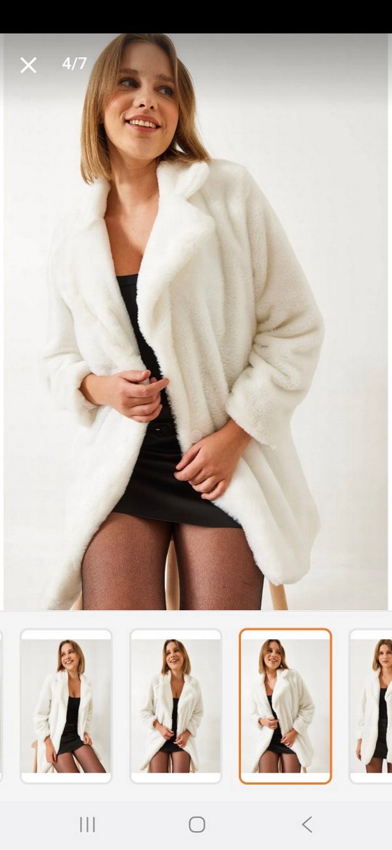 Beyaz Kadın Midi Suni Kürk Ceket