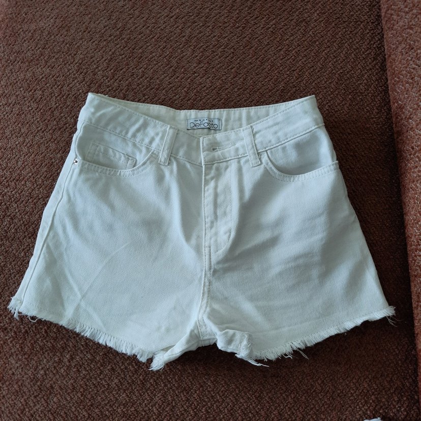 Pamuk kumaştan, beyaz renkli, bol kesim mini denim şort. Günlük sokak stiline uygun, kısa ve salaş tasarım. boyu 30cm