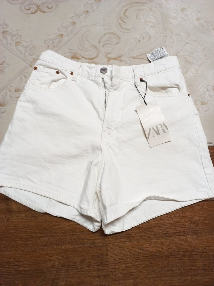 Pamuklu, beyaz renkli mini denim şort, rahat bol kesimi ve desensiz tasarımıyla günlük sokak stili için uygun. Zahmetsiz şıklık sunar.
