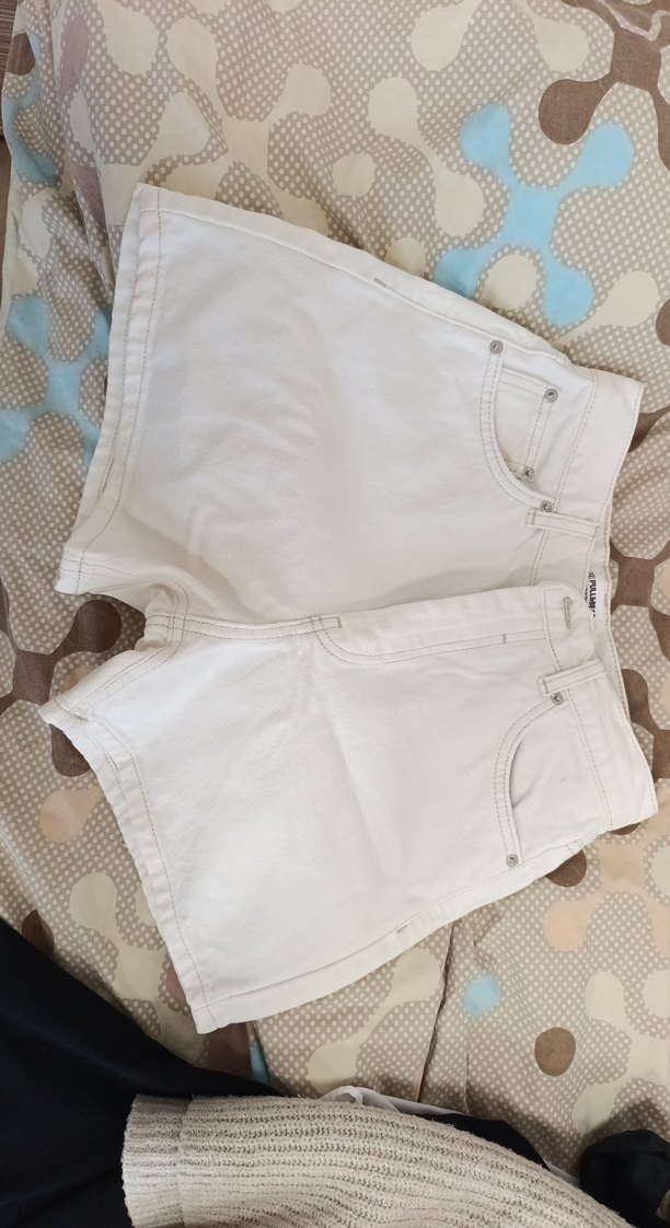 Beyaz pamuklu mini denim şort, bol kesim, gündelik sokak stili ve rahat kullanım için uygun. Hafif ve zahmetsiz şıklık.