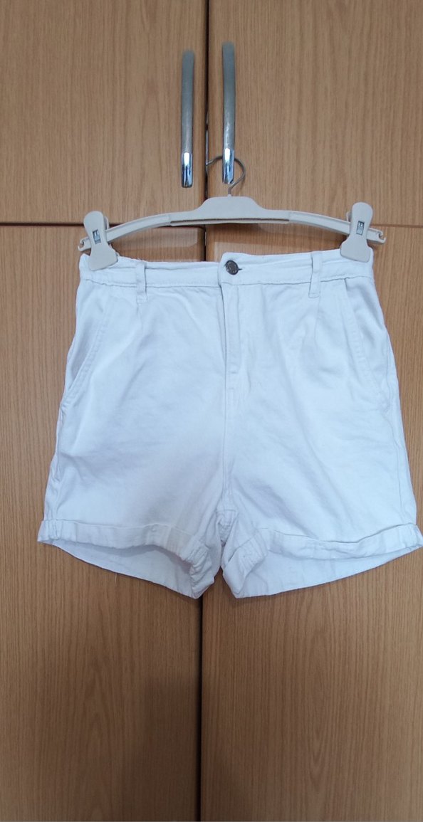 Gündelik kullanım için uygun, rahat kesim beyaz pamuklu mini şort.Yeniden farksız