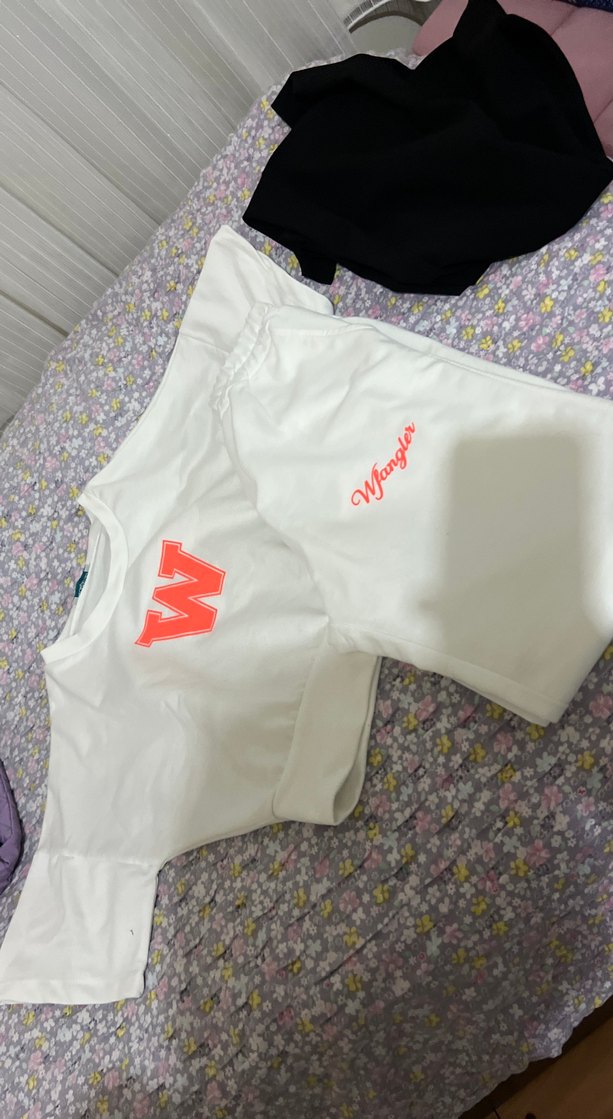 Beyaz renkli, kısa kollu, bol kesim kadın mini tişört. Sentetik kumaştan, renkli baskılı ve Velcro detaylı, straplez yaka ile spor şıklık sunar. ♀️