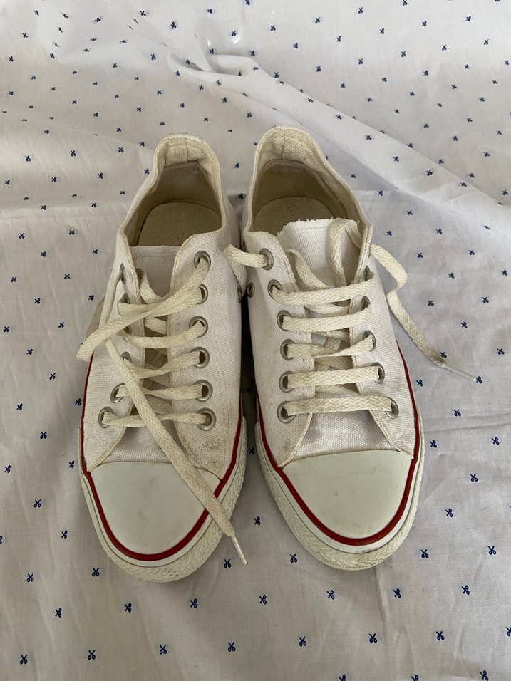 Pamuk malzemeden üretilmiş, düz tabanlı beyaz kadın spor ayakkabısı, minimalist ve sade tasarıma sahip, günlük kullanım için uygundur.