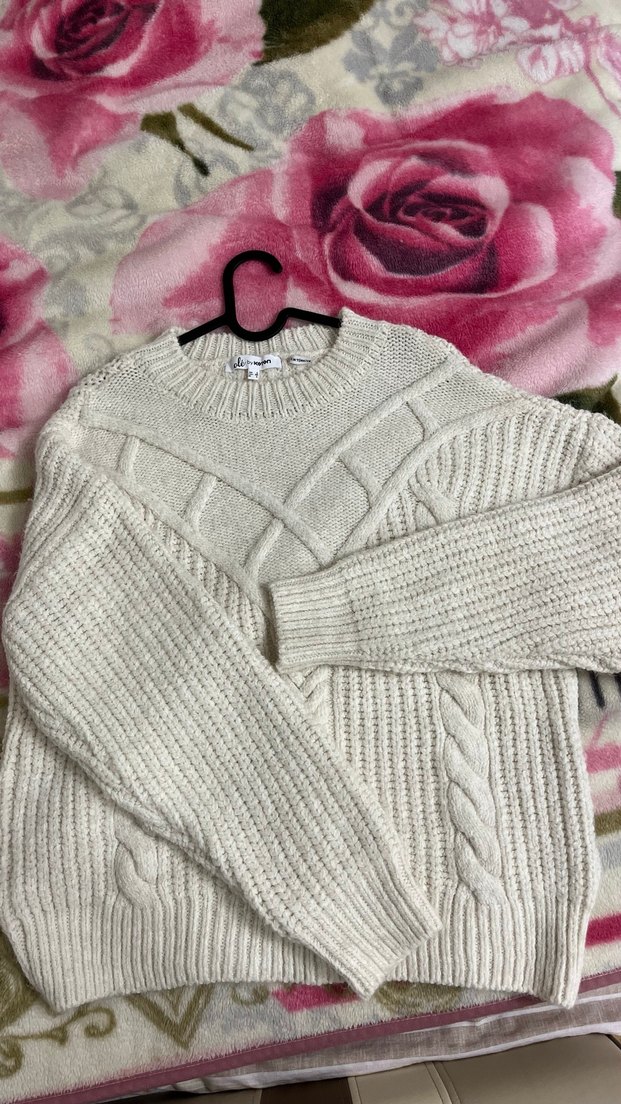 Beyaz örgü kazak, uzun kollu ve salaş kesimlidir. Yuvarlak yakası ve desensiz yapısıyla günlük kullanıma uygundur. Rahat ve şık bir sokak stili parçasıdır.