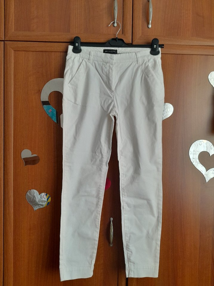 Beyaz pamuk kumaştan, normal boy ve regular fit kesime sahip, günlük kullanıma uygun rahat kadın pantolonu. Beli 35 cm, boyu 88 cm.