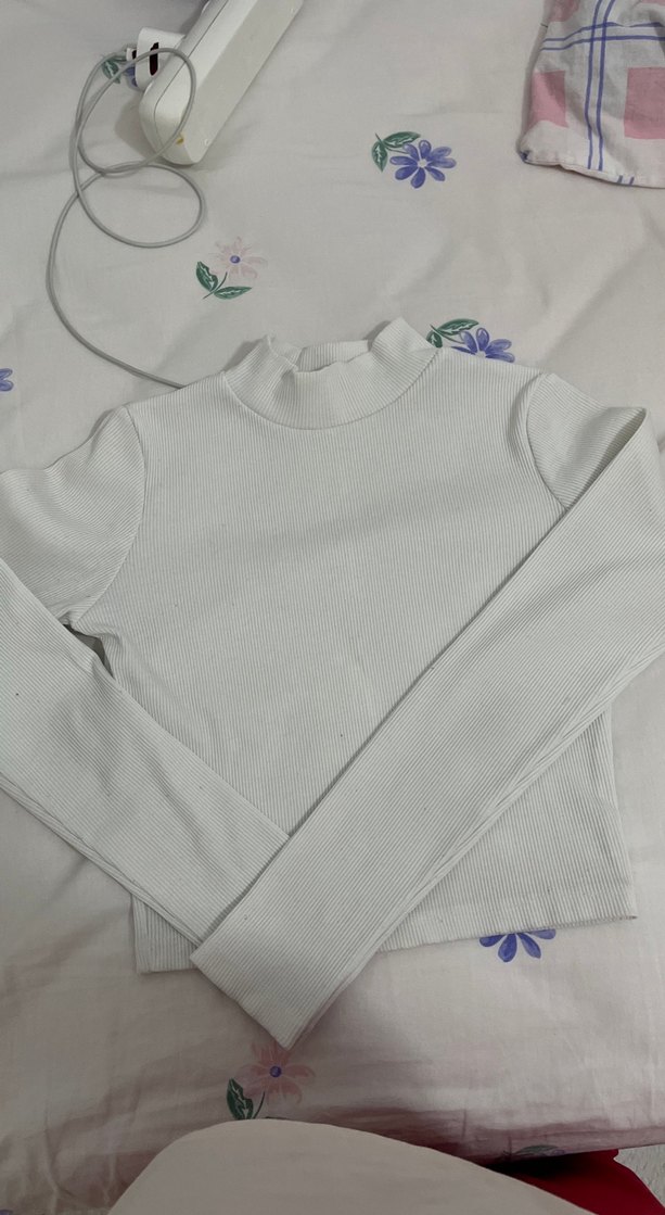 Pamuklu kumaştan yapılmış, boğazlı ve uzun kollu beyaz, vücuda oturan kazak. Normal midi boyu ve sade tasarımıyla günlük kullanıma uygun, zahmetsiz şıklık sunar.