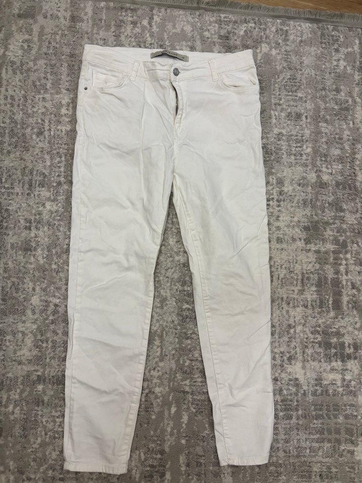 Beyaz pamuklu jean, normal boy ve regular fit, gündelik kullanım için sade ve şık bir tarz sunar.