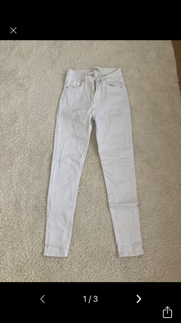 Pamuklu kumaştan, normal kesim ve midi boyda beyaz kadın jean. Minimalist ve normcore tarzıyla günlük kullanıma uygun.