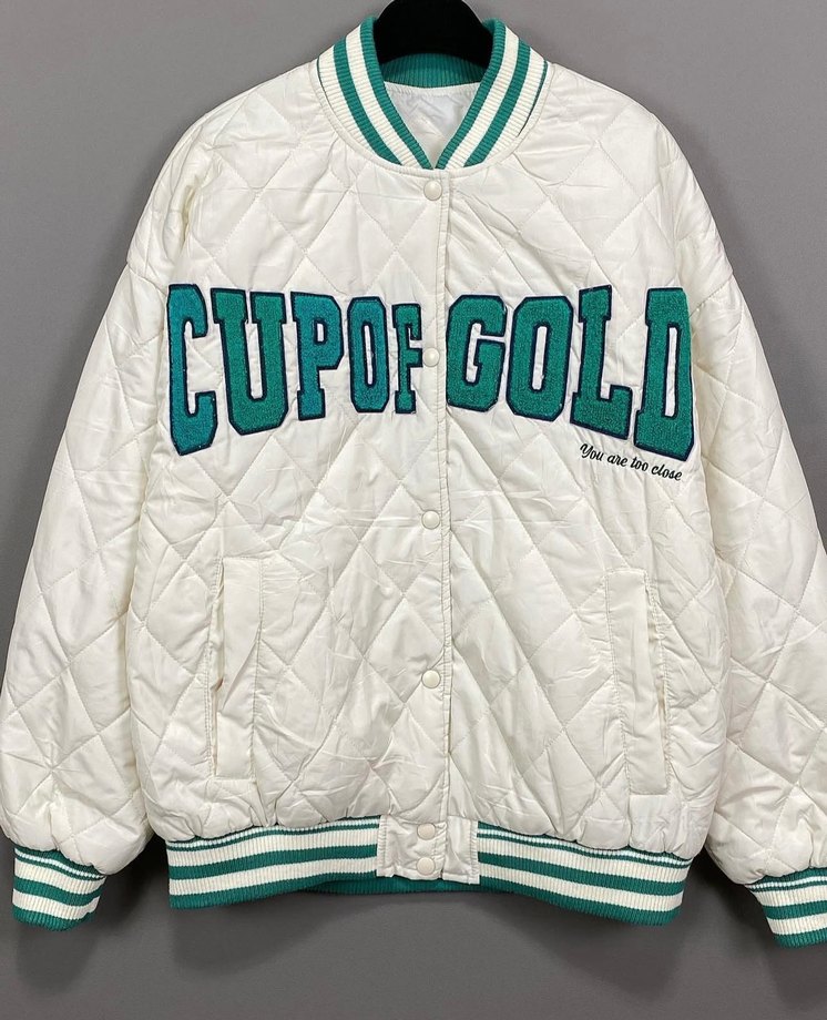 Yırtık yok. Yaka kısmında biraz tüylenme var cok kullanılmadı . Oversize dursun diye L almıstım cok bol bi kesimi yok. Beyaz pamuklu puff tasarımlı, uzun kollu, yuvarlak yaka, bol kesim ve normal boyda ceket. Yeşil çizgili ribana manşet ve etek ucu, önünde 'CUPOFGOLD' yazısı bulunur.