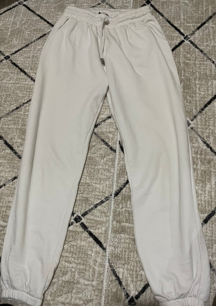 Pamuklu, bol kesim ve elastik bel bantlı beyaz kadın eşofman, günlük rahatlık ve şık görünüm sunar. Paçalar lastiklidir.